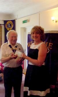 However, before that happened the event began with Lion Reg completing his project which was to give a donation of £100 to each of sixteen different 'Good Causes' chosen individually by the sixteen members of the Club. The organizations and individuals involved were as follows: