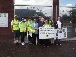 To mark Lions ‘World Sight Day' on Saturday 13th October 2012 the Crofton Lions Club invited two representatives from each of two local Pubs to join them in a ‘journey for sight'. Led by a very special Guide Dog, who was later revealed as the Club Presidents husband, Lion Tony Stabler, and accompanied by safety marshals the teams walked blindfold round the busy shopping area in Stubbington and along a ¾ mile route to the next pub.